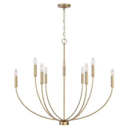 The Ainsley 9-Light Chandelier brings a classic shape refreshed with sleek contours and sweeping curves. The elongated arms create dimension, while the open silhouette invites standout style that doesn't overpower. Finished in Matte Black, Brushed Nickel and Aged Brass for sophisticated contrast.