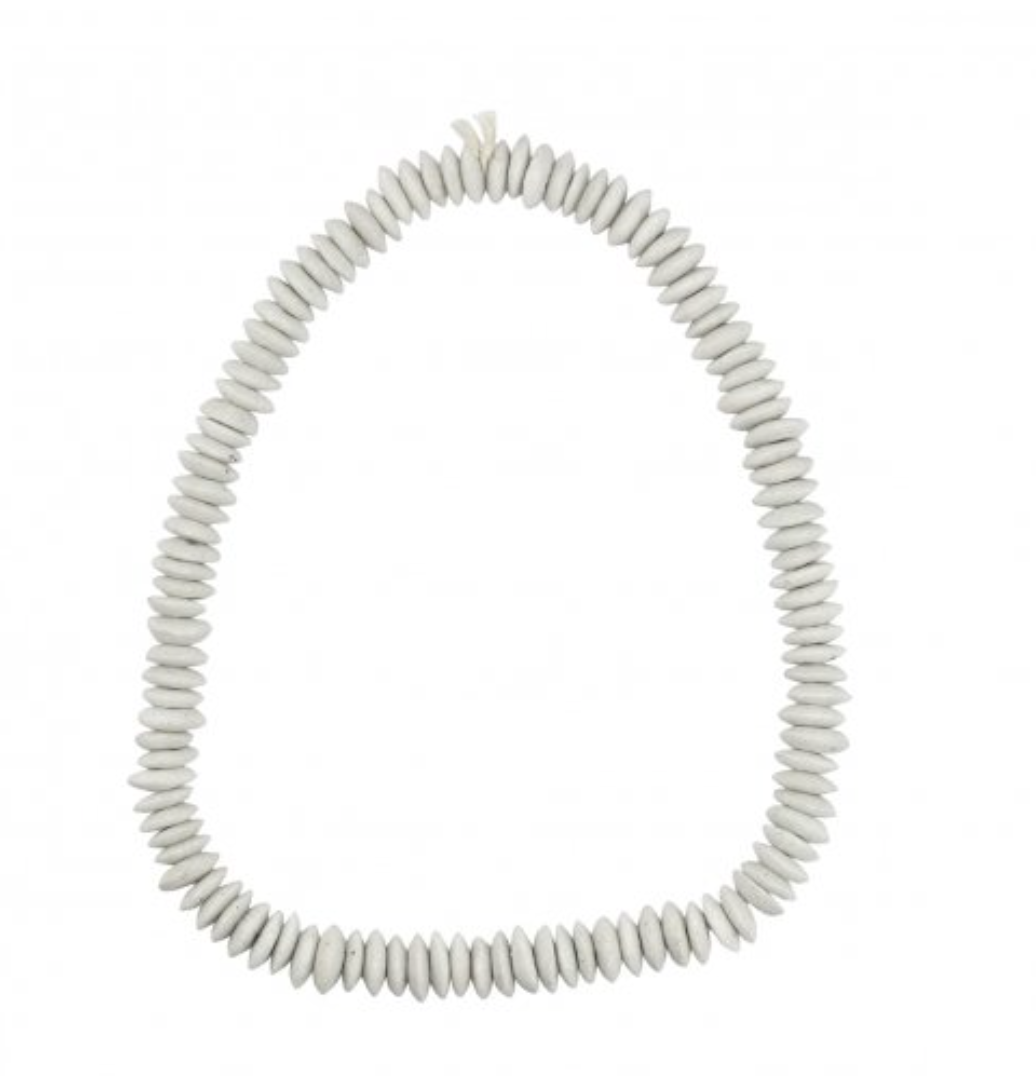 Ashanti beads are also known as "talking beads." They get their name from the distinct sounds that the various shaped beads make. The beads are intended to knock together as a person moves. The name of the beads come from where they are crafted, in the Ashanti region of Ghana. While Ashanti Beads are traditionally worn as jewelry, they can also serve as a decorative accent when placed around a pillar candle or vase to create a subtle textural accent.
