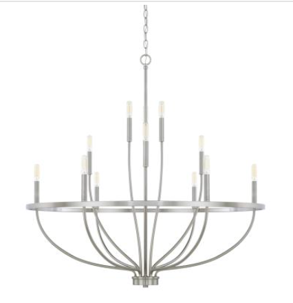 12 light chandelier with Matte Black, Bronze, Brushed Nickel and Aged Brass finishes.