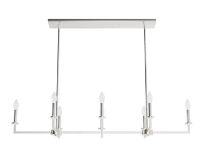 The Barton linear chandelier is a modern industrial masterpiece, lending a stately air to any dining room, formal living room, or upscale kitchen aesthetic. The Barton's cool, clean lines are offset by the soft warmth of its eight candle-like bulbs, while the fixture's simple finish keeps the accessory from overpowering your space. Shine brightness through your home with the Barton collection.
