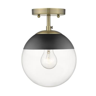 Mid-century modern design with a modern twist, these fashionable orbs are highly customizable. Available matte black, aged brass, or two tone. Caps are available in a number of accent colors to further customize your look. Choose colors and finishes that complement your existing décor or design your entire room around your favorite color combination. This semi-flush is UL approved for use in a bathroom, but also works perfectly in a kitchen, living room, entry, or hallway.