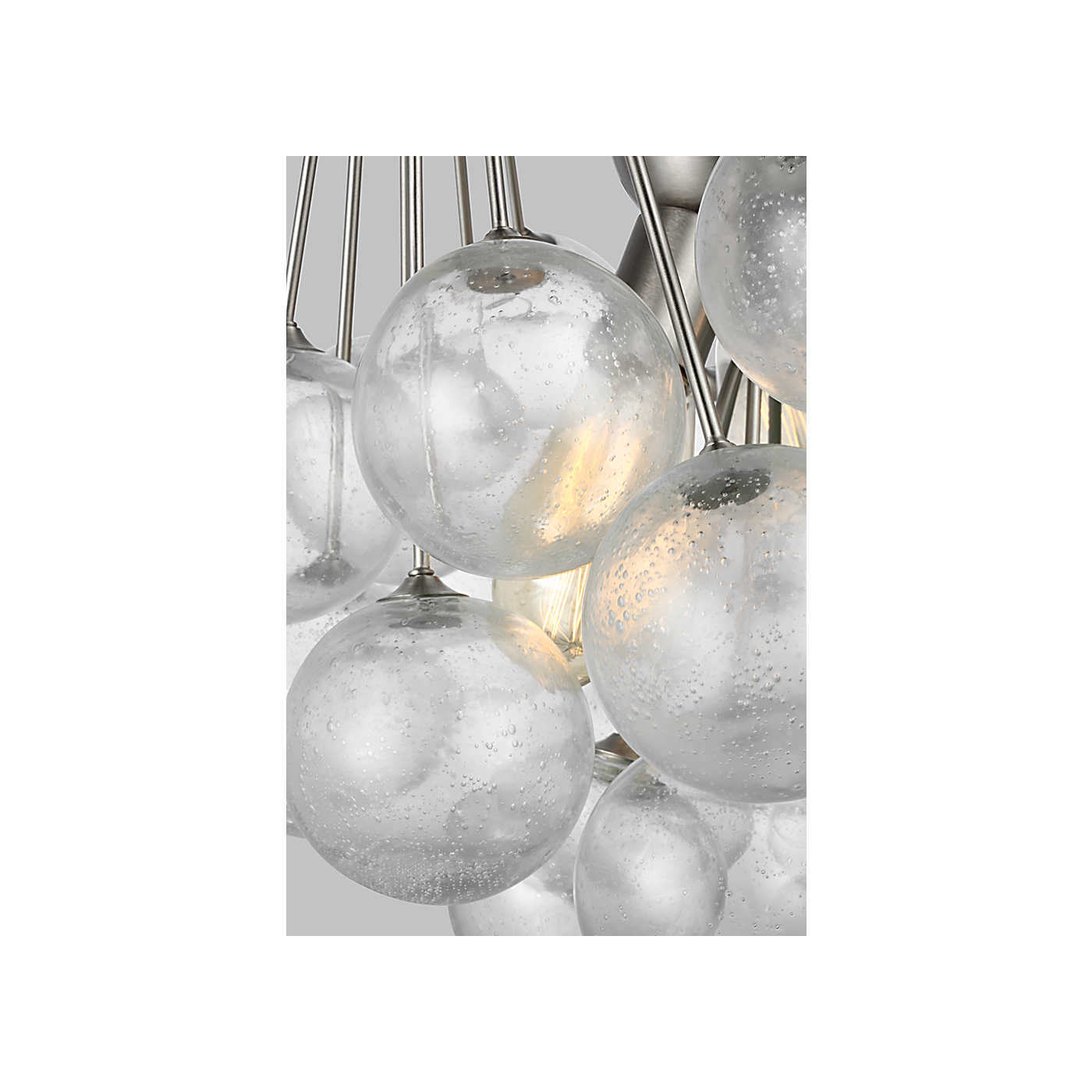 Bronzeville brings a daring, upscale element of mid-century modern design to any space. Hand blown, Seeded Glass globes encircle warm, glowing, filament lamps, diffusing the light to create a serene ambiance of light and shadow. Available in two finishes.