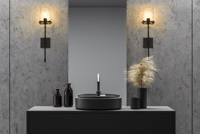Hand-crafted steel brings an inherent quality to the Cale one-light wall sconce, serving as a superb source of accent lighting as well as an integral element of overall interior décor. A bold matte black finish steel frame and wall plate contrast with a gleaming tapered clear glass shade to deliver a sleek transitional aesthetic with a hint of drama.