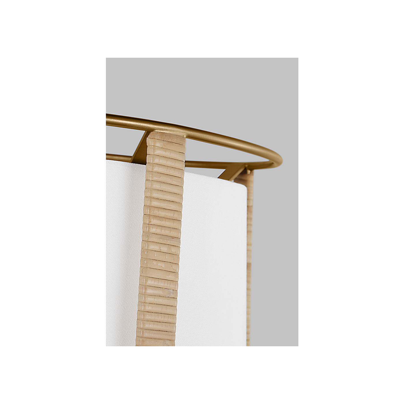 The Cortes Large Hanging Shade by Drew & Jonathan delivers a harmonious blend of relaxed style and modern elegance. Its gently tapered white linen drum shade is framed by rattan-wrapped steel spokes, creating a breezy yet refined silhouette. Finished in Satin Brass, this damp-rated fixture is designed to illuminate covered patios, kitchens, or dining areas with a warm and inviting glow. The circular canopy and streamlined downrod complete the design, making the Cortes Hanging Shade a versatile choice for transitional, coastal, or bohemian-inspired interiors.