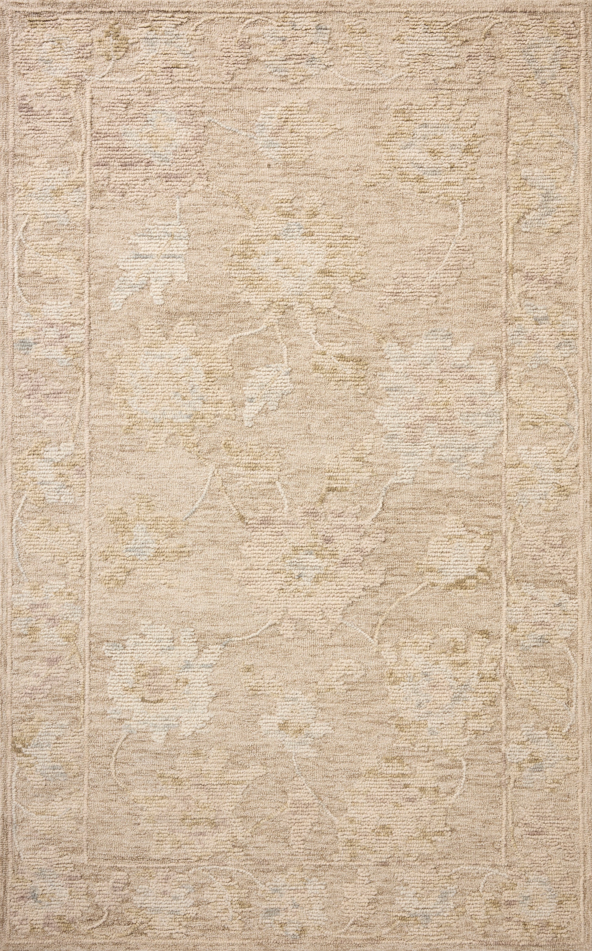 The Cynthia Collection is a beautiful floral area rug with a high/low looped pile that gives the oversized design even more dimension. A neutral-toned rug for many home decor styles, Cynthia is perfect for living rooms, dining rooms, bedrooms, and more. This collection is hand-tufted of wool in India and Goodweave-certified, ensuring our commitment to ethical production and the support of weavers communities. Some shedding is expected and a natural characteristic of wool rugs; we recommend vacuuming frequently without a beater bar.
