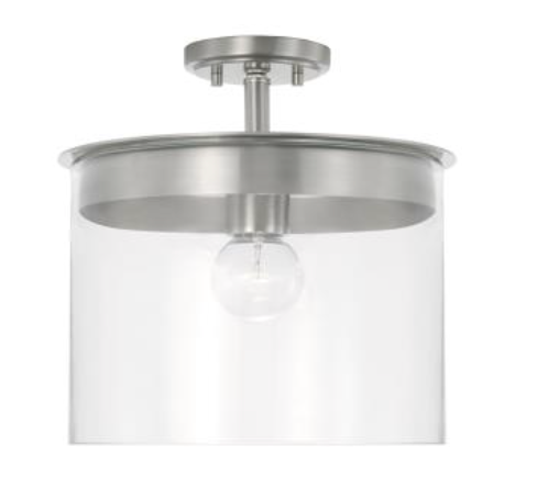 The Dawson is a dual mount which can be used as a semi-flush mount or a pendant. Available in Matte Black, Brushed Nickel and Aged Brass finishes.