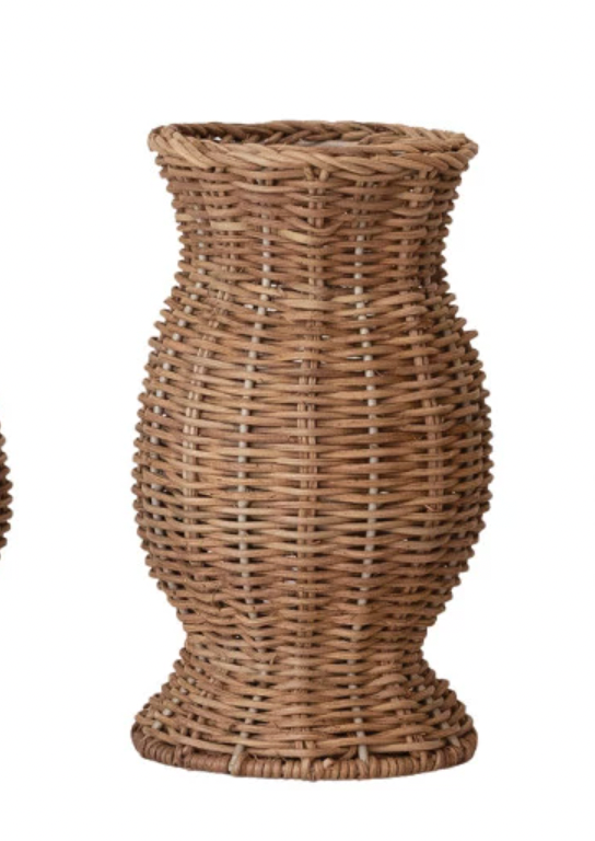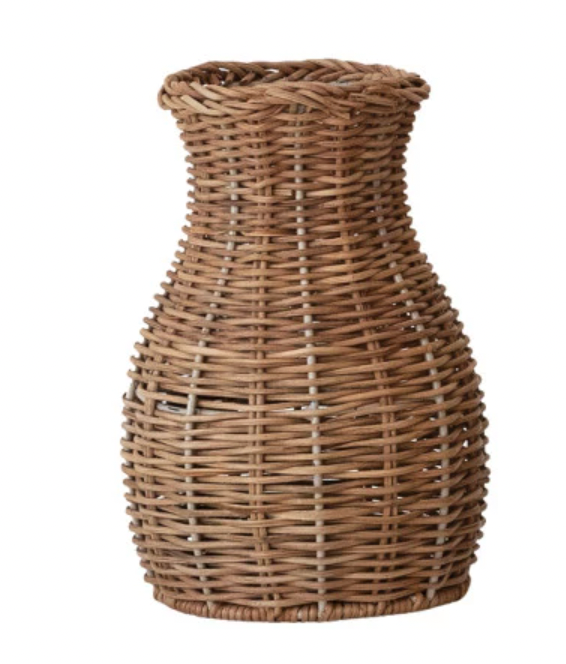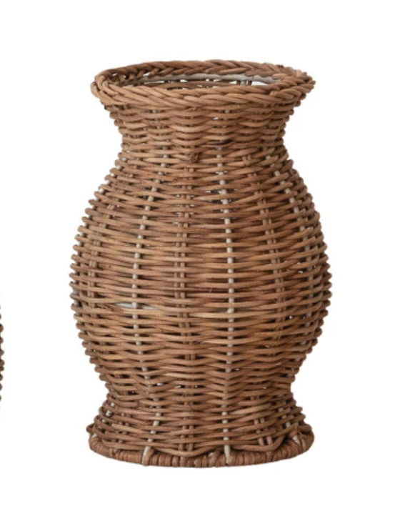 8"H - 8-1/2"H Hand-Woven Rattan Vase w/ Removable Glass Insert, Natural, 4 Styles