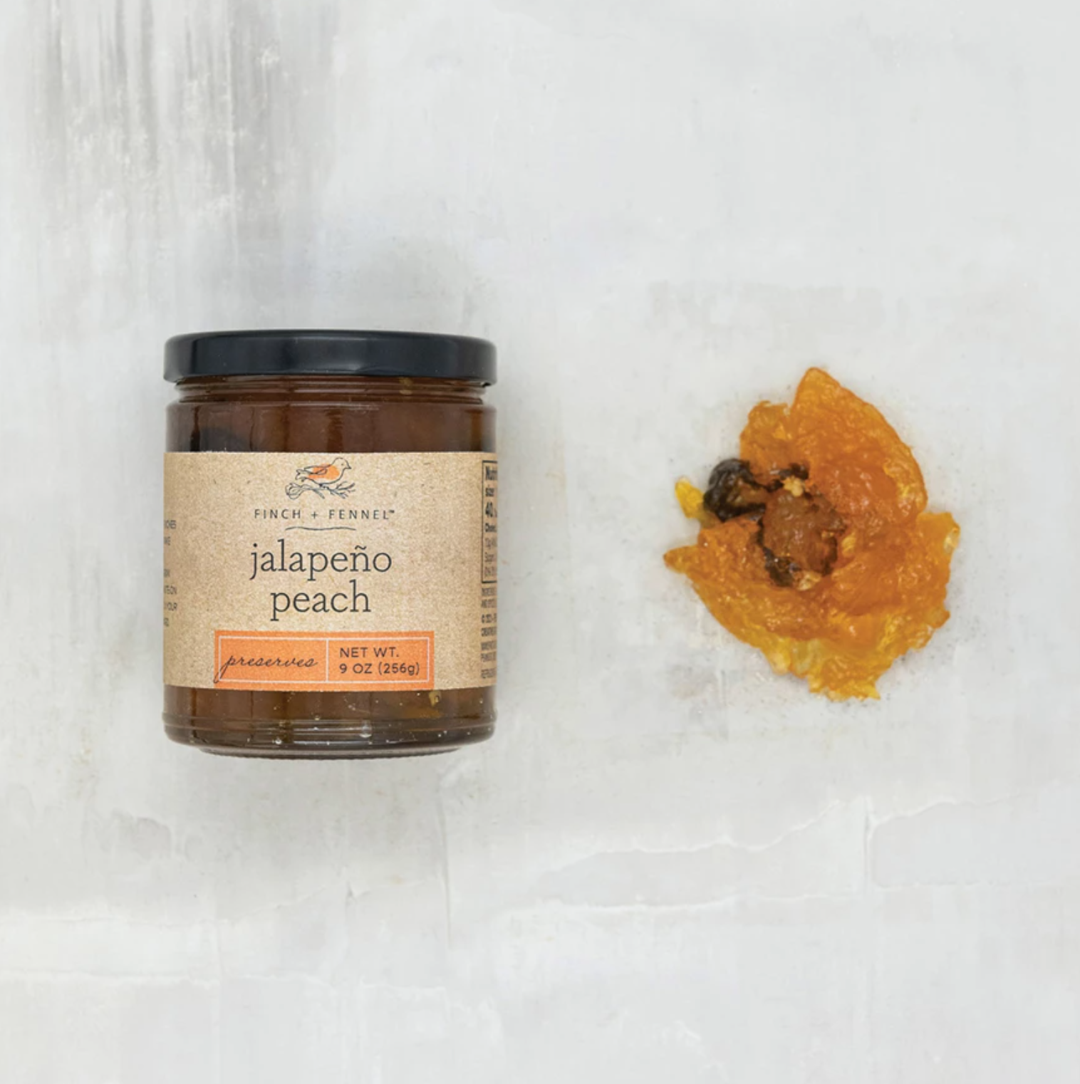 Our Jalapeño Peach Preserves combine sweet peaches and spicy jalapenos to make the perfect summertime preserves. Pour over cream cheese for a tasty dip, baste on grilled chicken, or use on your favorite charcuterie board.