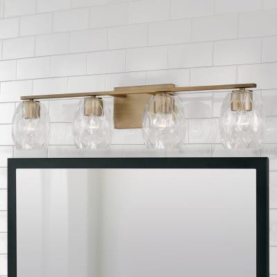 Aged Brass with a wavy embossed glass creates a traditional and unique touch to your vanity fixture. Also available in Matte Black or Brushed Nickel.
