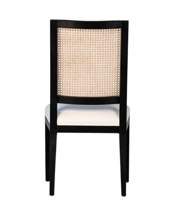 Set of 2 black frame and natural cane back dining chair.