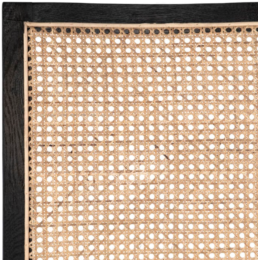 Finish: Antique Black Frame with Natural Rattan and White Fabric