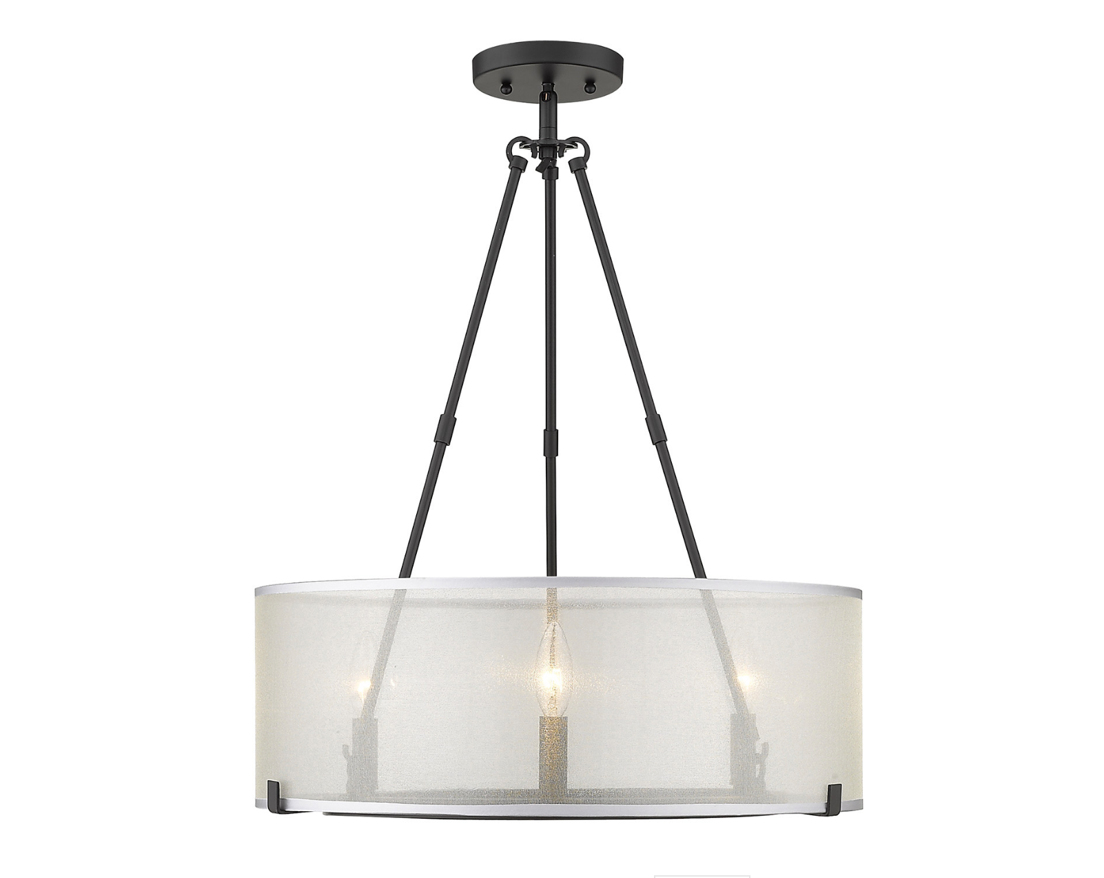Beautifully brighten up your space with this chic feminine design. Percy is understated elegance in a transitional to modern form. The deceptively simple look has an underlying intelligent design that allows users to customize the hanging heights of the fixtures through the use of Percys short and long rods. The stylish, sheer opal fabric shade is positioned to lightly veil the candelabras. The connector rods act as a configurable detail. Break apart the connector rods to customize the look of the fixtures. Choose to install with the long connector rods, the short connector rods, or both. For versatility, this updated classic is offered in multiple finishes. This 3-light fixture creates a stylish focal point and is comfortably sized for intimate dining and living areas.
