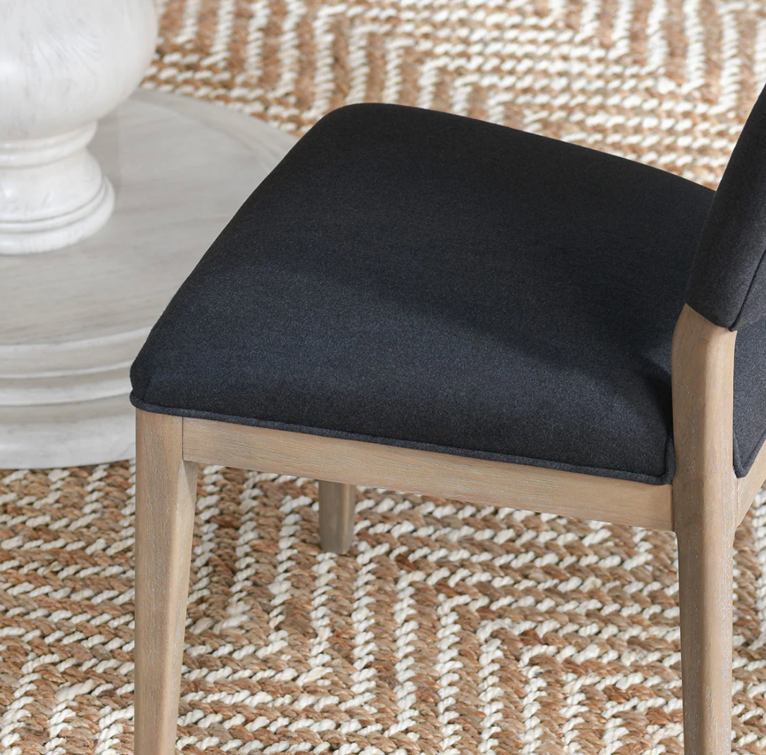 The Phill Dining Chair features a comfortable linen blend fabric and a solid wood frame with tapered legs. Its simple yet elegant design makes it a versatile addition to any dining space. The chair offers both style and durability, providing a supportive seat with a timeless look that complements various décor styles.
