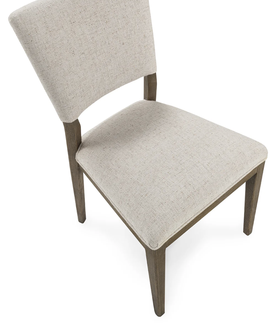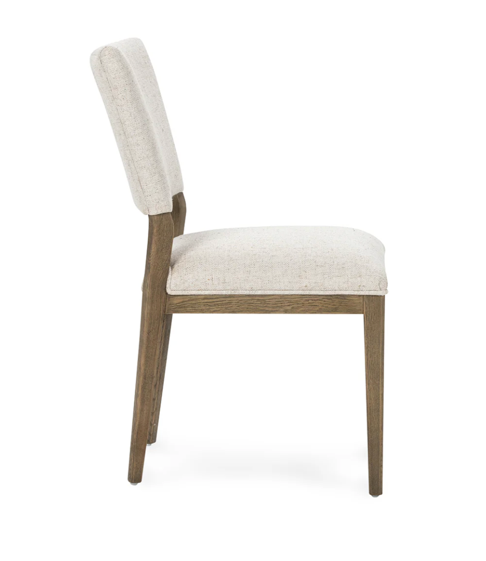 The Phill Dining Chair features a comfortable linen blend fabric and a solid wood frame with tapered legs. Its simple yet elegant design makes it a versatile addition to any dining space. The chair offers both style and durability, providing a supportive seat with a timeless look that complements various décor styles.
