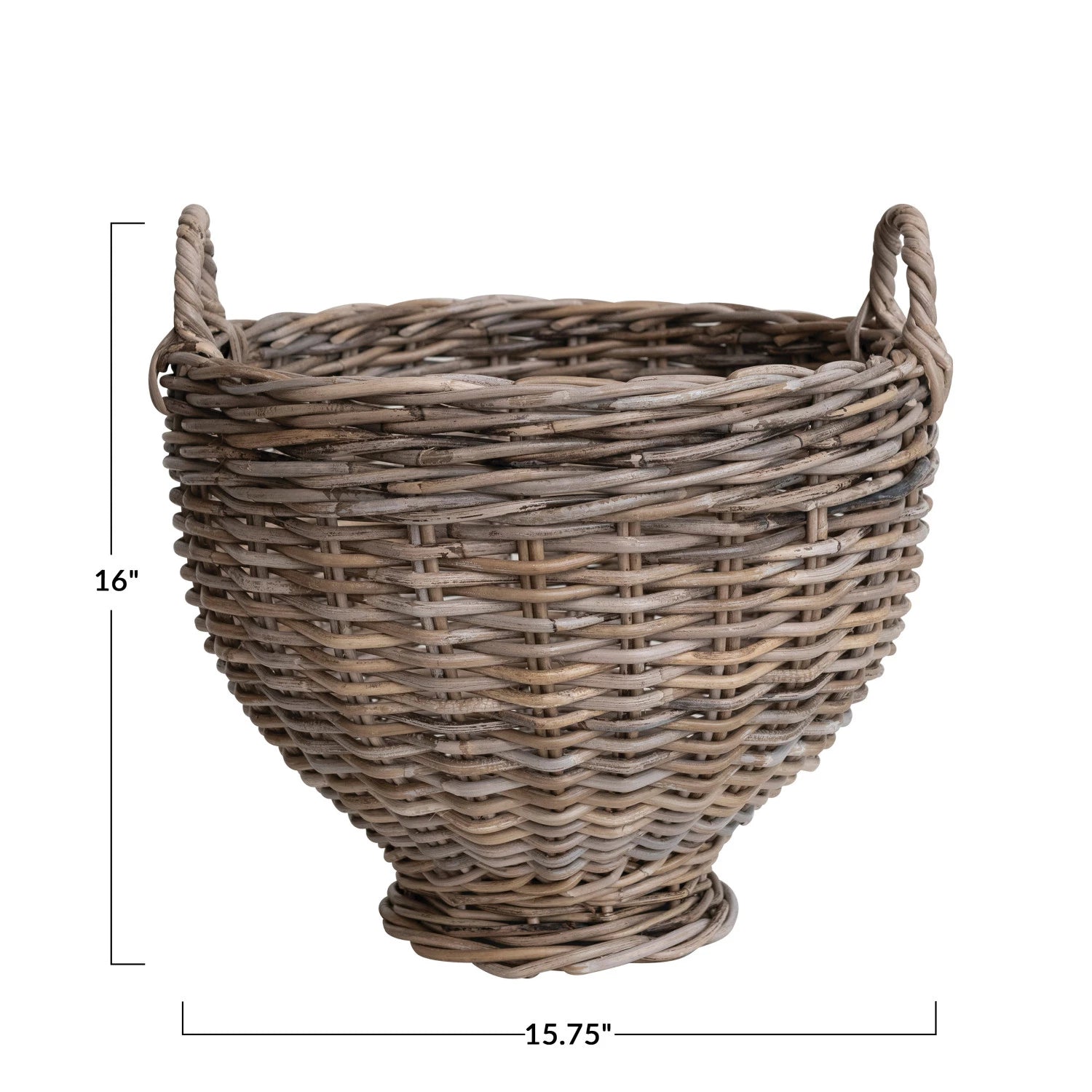 15-3/4" Round x 16"H Hand-Woven Rattan Footed Basket w/ Handles, Natural