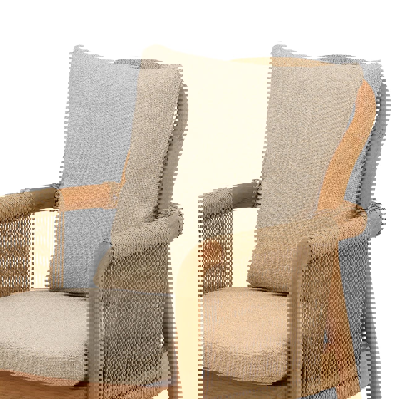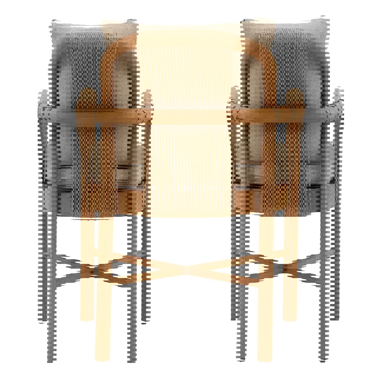 Designed with both style and practicality in mind, this chair features weather-resistant Olefin fabric that ensures lasting color and comfort, while the sturdy Teak wood frame provides exceptional support and stability. Its contemporary design complements various outdoor aesthetics, making it an ideal addition for hosting gatherings or enjoying quiet moments outdoors.