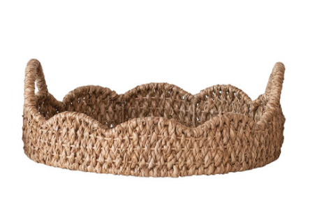 These bankuan trays with handles add natural elegance and functionality to any home. They are handcrafted from natural bankuan, a type of grass that grows in the Philippines. The trays have a rectangular shape and a woven design that creates a sophisticated and refined look. They also have convenient handles that make them easy to carry and store. It measures 22 inches in length, 16 inches in width, and 3 inches in height, 20 inches in length, 16 inches in width, and 3 inches in height, and 18 inches in length, 14 inches in width, and 2 inches in height. They can serve guests, organize belongings, or decorate space, bringing a touch of farmhouse, boho, French country, coastal, or lodge style to any home. The set includes three different sizes of trays that can nest inside each other when not in use. They are a perfect way to add texture and warmth to any space.