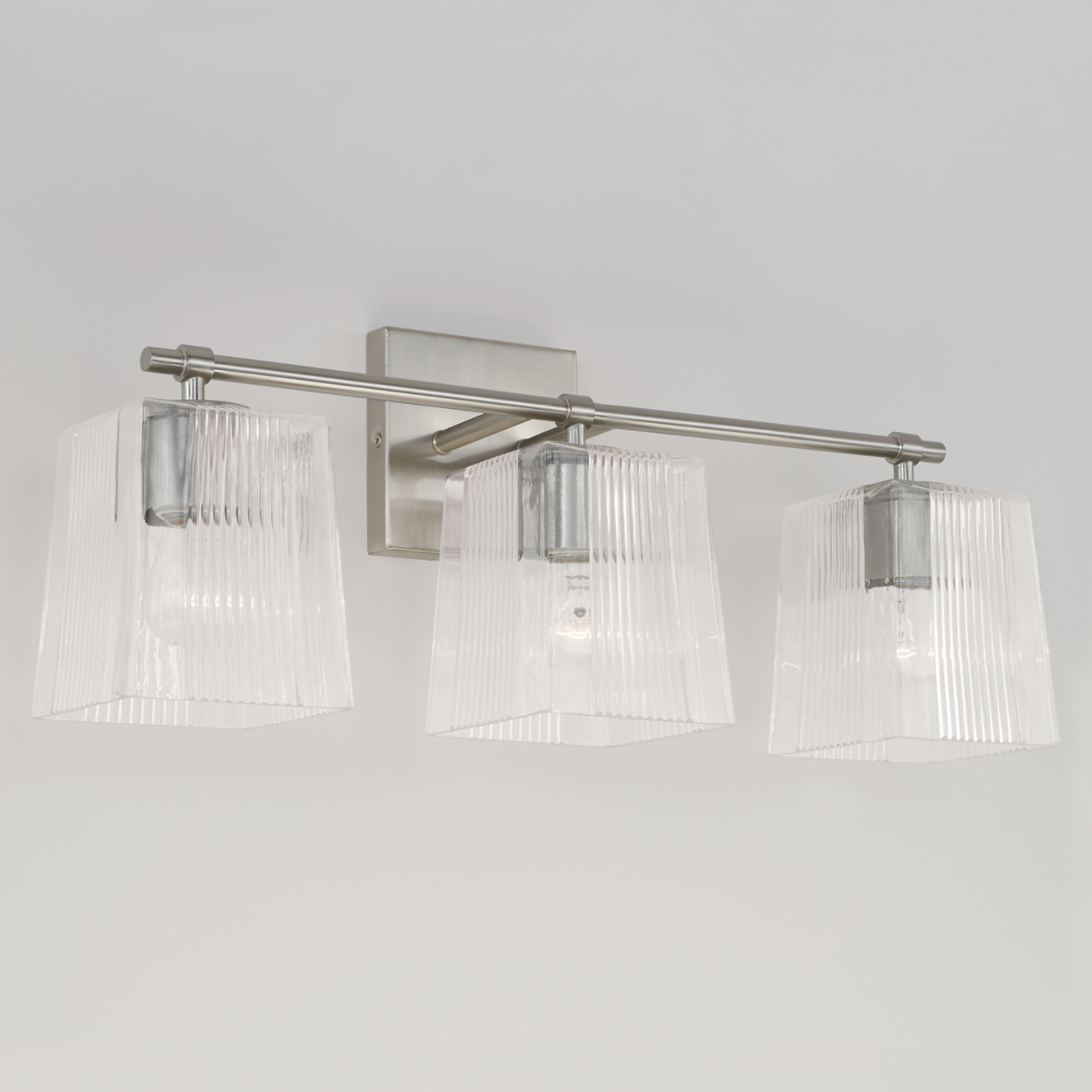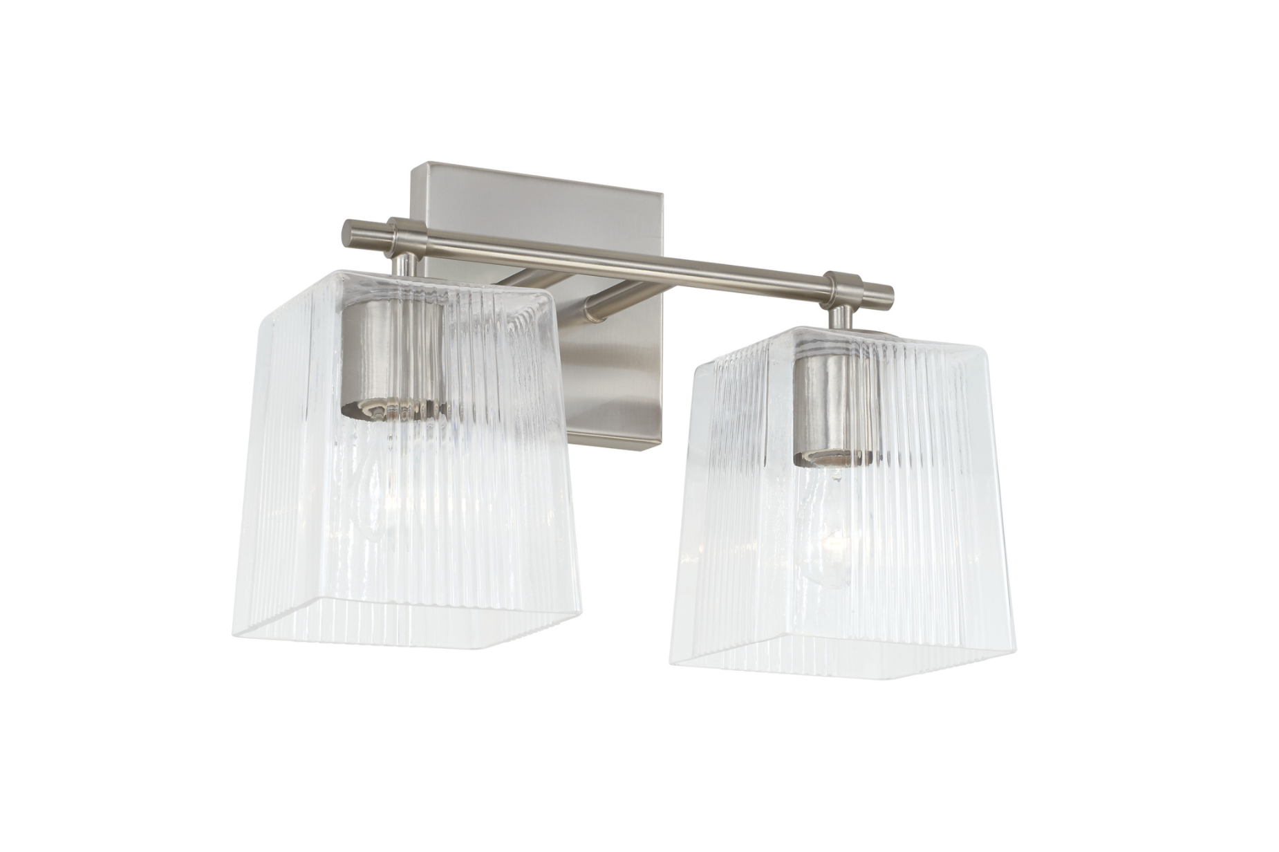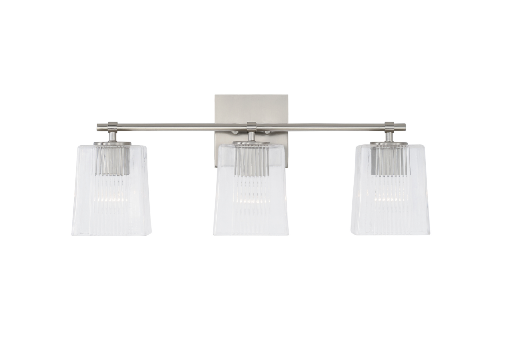 The chic fluted details on the Sandra Vanity Light create character and visual interest. The tapered glass silhouette accented by the Brushed Nickel finish adds a stunning yet simple sparkle to any space.