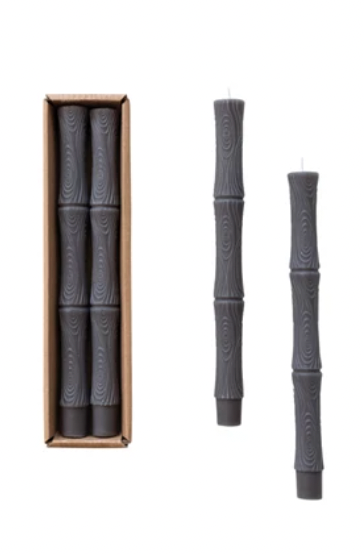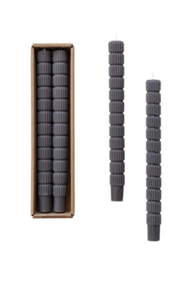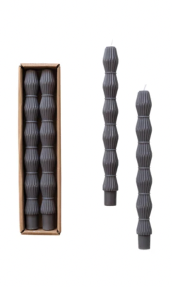 3-1/4"L x 1-3/4"W x 10-1/4"H Unscented Sculpted Taper Candles, Charcoal, Set of 2 (Approximate Burn Time 8 Hours)