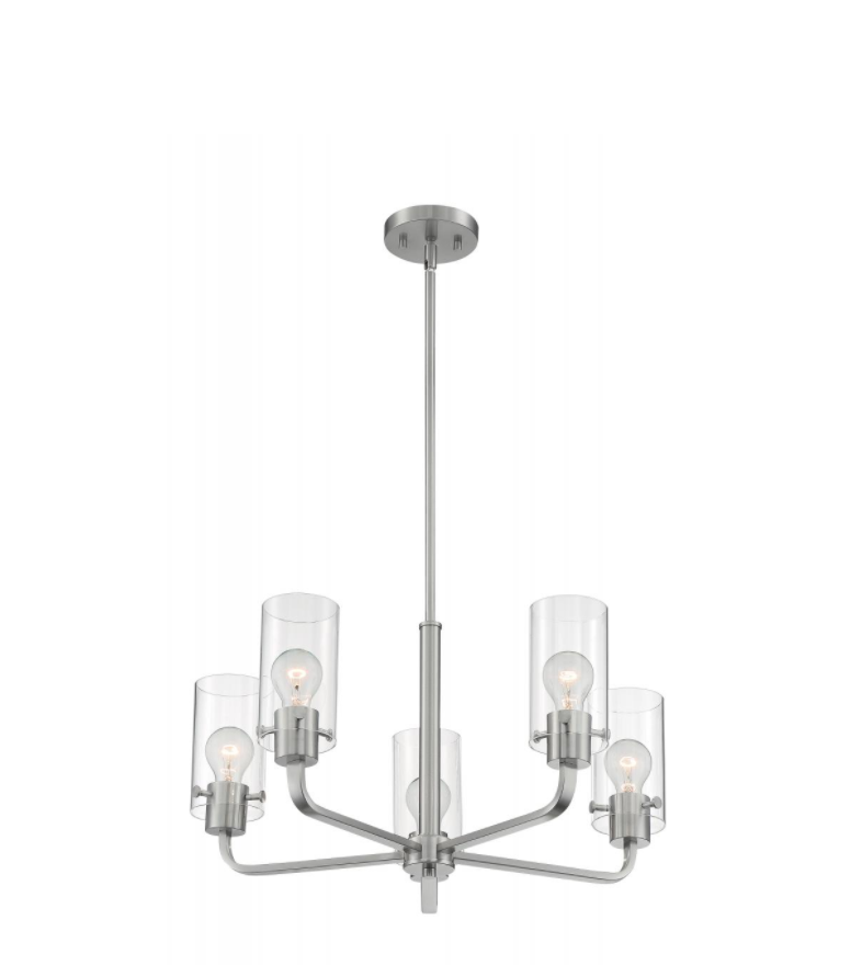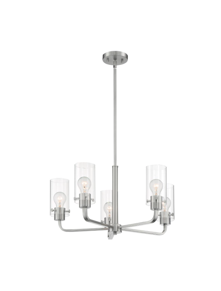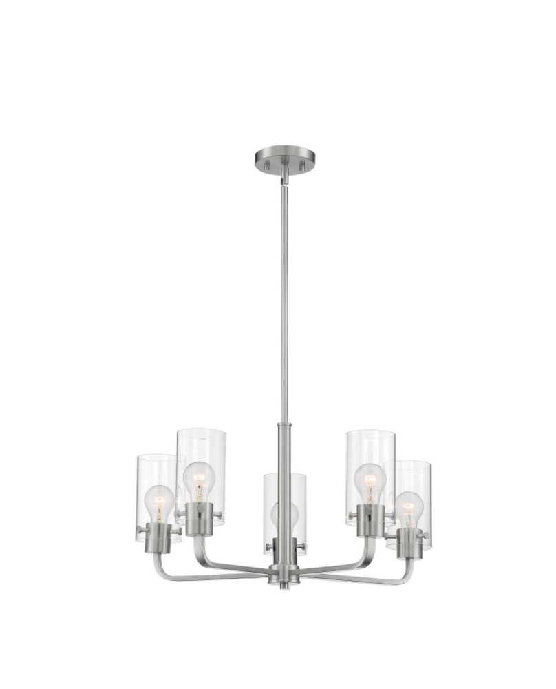 5 Light Chandelier with Clear Glass - Matte Black or Brushed Nickel Finish