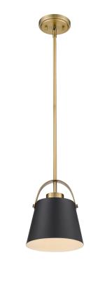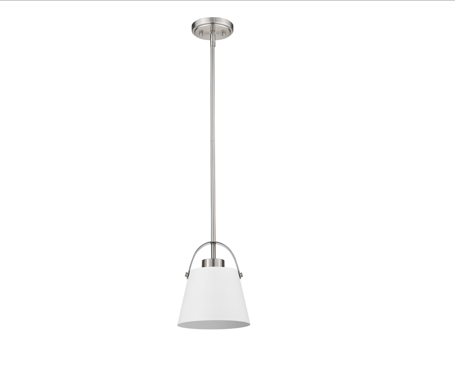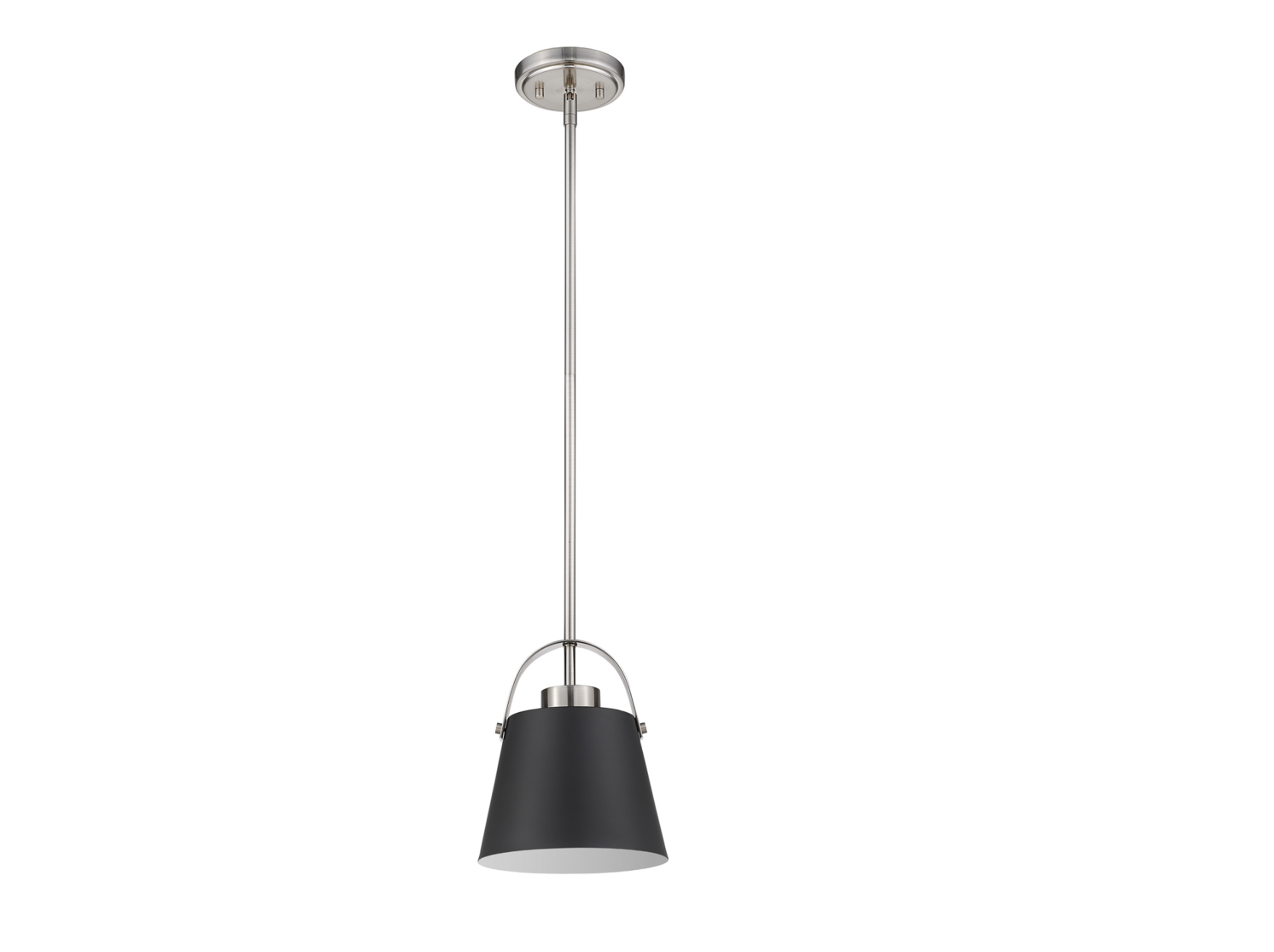 Incorporate design-forward illumination into a decadent contemporary décor scheme with this gorgeous one-light mini-pendant. Bring targeted lighting to a compact nook or reading space with a sleek fixture fashioned from Matte White or Matte Black and Heritage Brass finish o metal, with a classic angled shade.