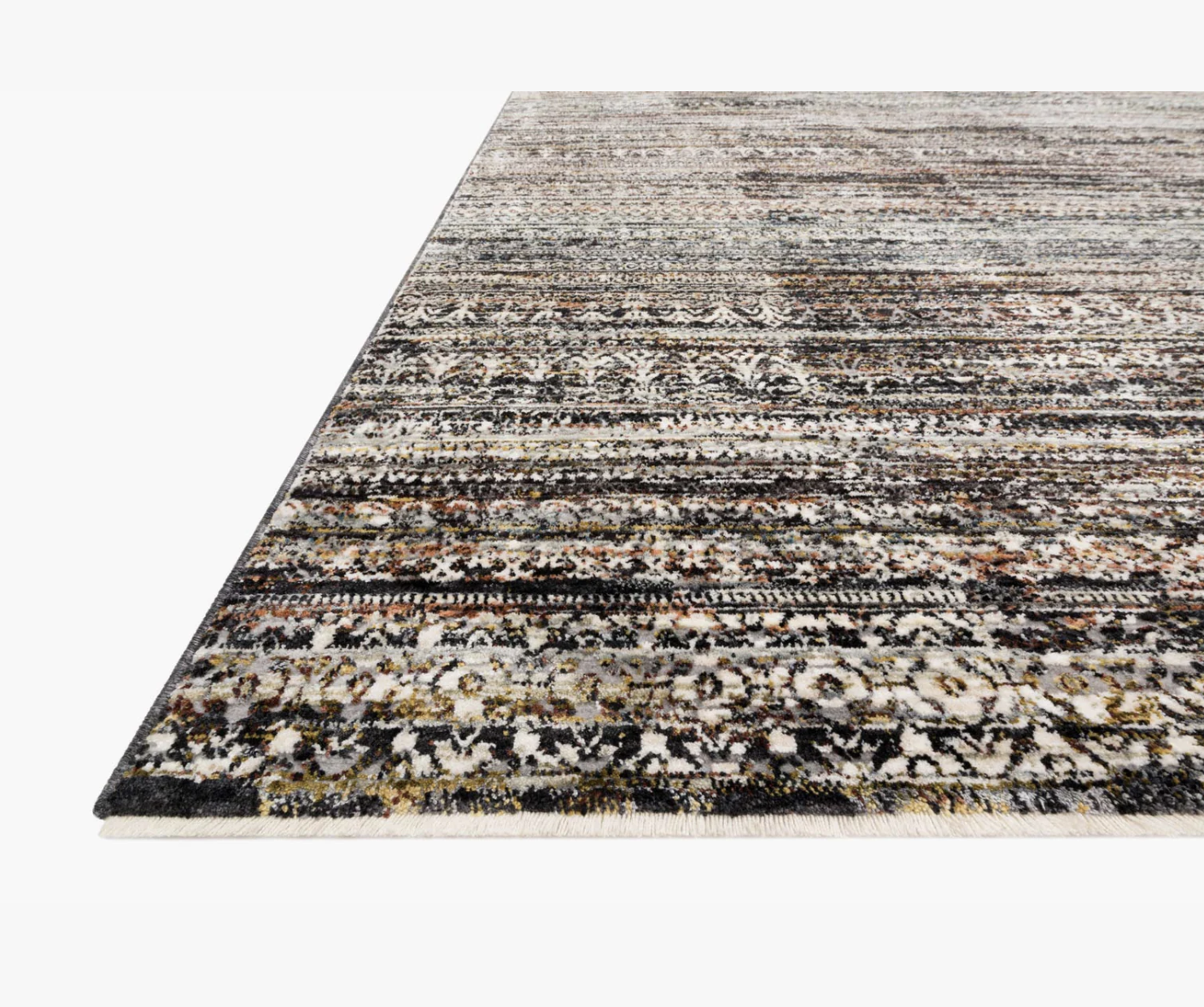 Power-loomed of polyester pile and rayon in Turkey, the Theia Collection offers elevated neutrals and pops of color with subtle pile height variation. This collection creates a unique look and bold design finished with a refined fringe border.
