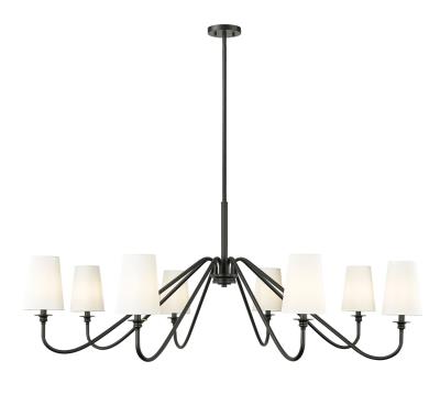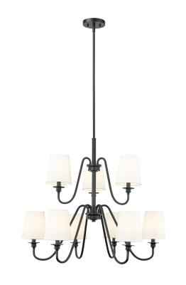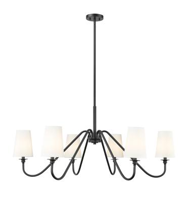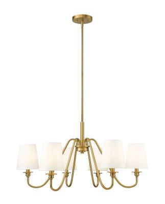 Swooping arms bring modern minimalism to a chic chandelier. It's a compelling, pared-down look that prioritizes elegance and beautiful illumination with opaque white shades and a modern gold or matte black finish that lends just the right touch of glamour.
