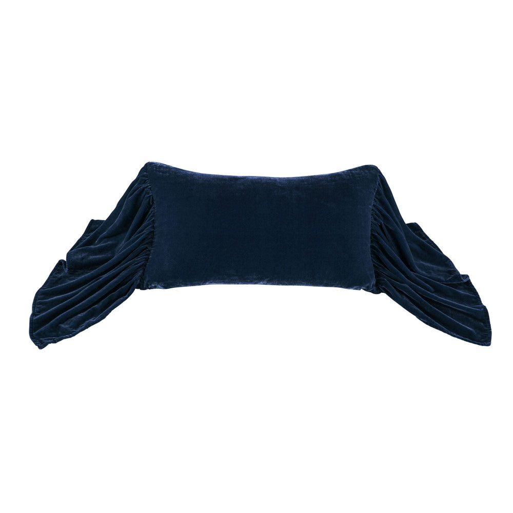 An elegant accent piece for any modern or traditional bedding. The Long Ruffled Pillow showcases the smooth, supple textures and lustrous gleam of faux silk velvet, accented with long, trailing ruffles for a sophisticated and romantic finish. This pillow comes in neutral and rich jewel tones to complement various styles and colors.