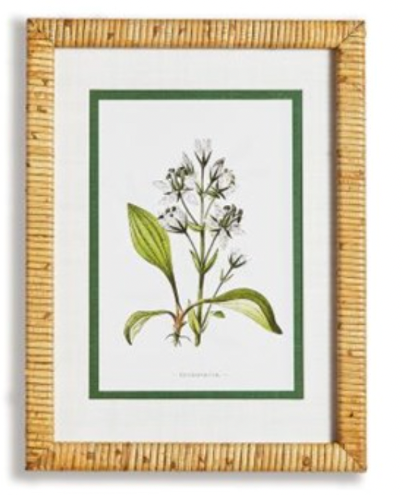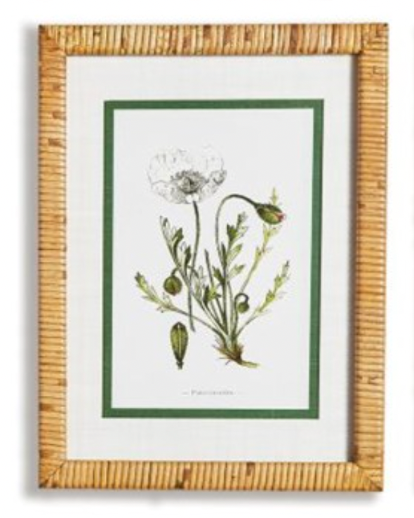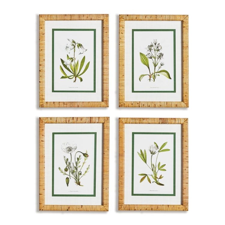 Description: Elevate your space with these elegant white floral prints, each showcasing a different type of flower in a classical style. The real mats and bamboo-wrapped pine wood frames add a touch of sophistication, making them perfect for a study, powder room, or bedroom. These prints are designed for interior use only and can be easily maintained by dusting with a dry cloth. The rattan-wrapped frames add a unique touch to these timeless pieces, creating a cohesive and stylish look for any room in your home. Sold Individually